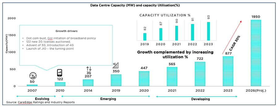 This under-penetration shows that there is a huge headway for the large capacity addition of data centers. Let’s discuss some key growth drivers below.