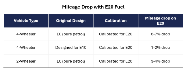 - Compatibility gap: Vehicles tuned for E0 or E10 were suddenly pushed onto E20. Older two‑wheelers and cars were not designed for higher ethanol levels, leading to faster wear and higher costs.