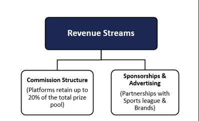 Fantasy cricket platforms in India typically operate on a freemium model with multiple revenue streams: