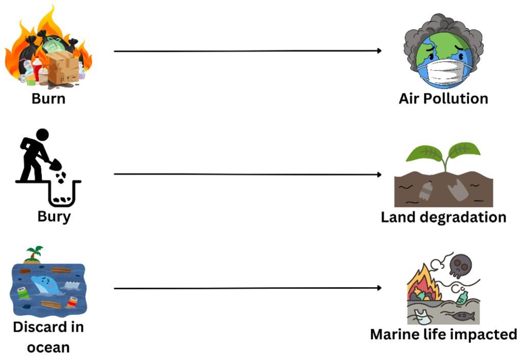 Now the problem is we cannot burn, bury or throw away this waste in the ocean as it will have negative implications on the environment.