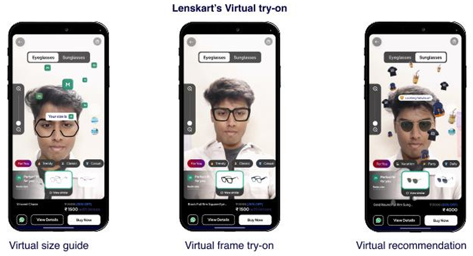 Hyper-Personalized Recommendations: The biometric data fuels an AI algorithm that filters through thousands of SKUs to suggest frames that are a precise technical fit. Lenskart’s model can predict frame size with an accuracy of ±1.5 mm, approximately three times more accurate than many competing solutions.
