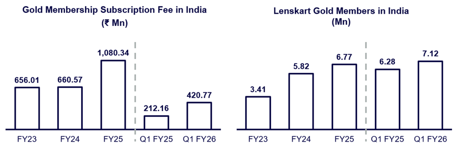 Massive Member Base: As of June 30, 2025, the Lenskart Gold program had 70 Lac members in India.