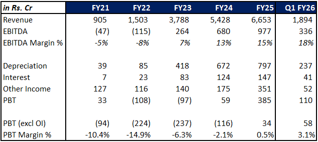 Therefore, the more appropriate lens for assessing true profitability is PBT (excluding other income) rather than EBITDA. On that basis, the business has only just turned profitable in FY25.