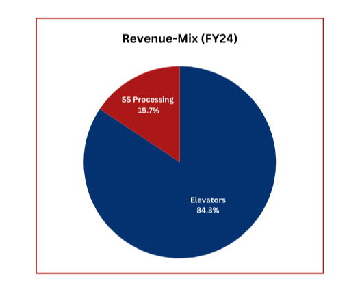 While Aaron’s primary business is manufacturing elevator components, it has also backward integrated into SS processing to reduce reliance on imports and offer high-quality processed and decorative SS sheets. This integration expands its capabilities beyond just elevator manufacturing, enabling the company to meet both the demand for elevator parts and quality SS materials.