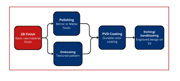 - Decorative or Custom designs (decorative SS finishes based on client requirements)