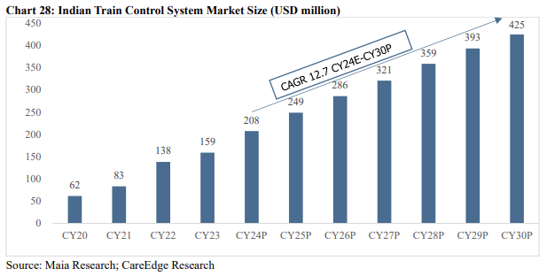 Talking about the industry growth, KAVACH is part of the Indian train control system industry.