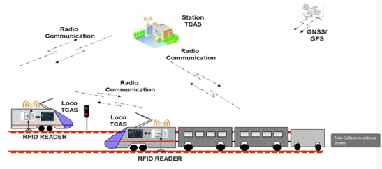 2. Radio Communication: The system relies on radio communication through railway towers, station TCAS units, and relays to transmit data between trackside equipment, onboard systems, and the Central Management System (CMS).