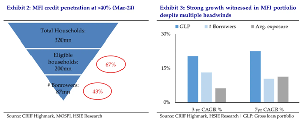 Out of the 20 crore eligible households for credit, 43% (or 8.7 crore) are already borrowers. Additionally, the average loan amount per borrower is also rising. This segment saw strong growth, especially after COVID-19, as personal spending increased. Banks and NBFCs supported this trend with aggressive lending practices.