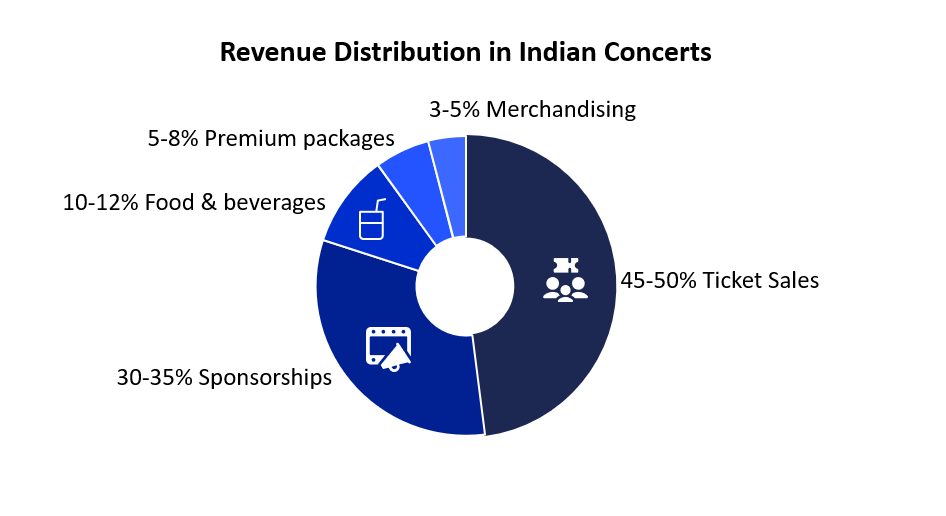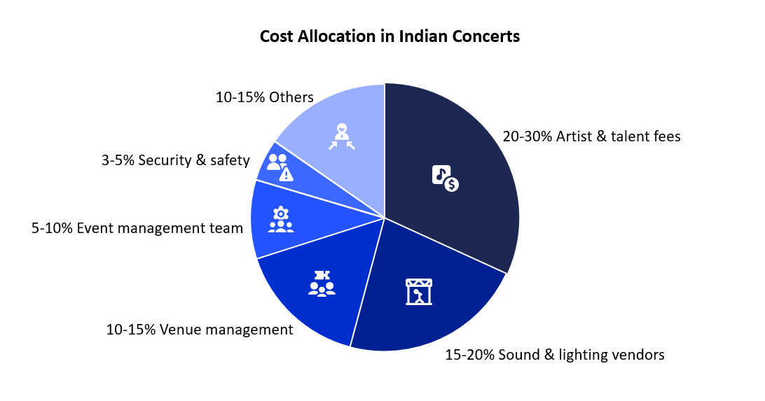 - Food & beverages – Hospitality spending during major concerts is estimated at Rs. 143–179 crore over three months, often shared between vendors and organizers.
