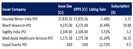 Largest IPO/ OFS in Indian historyHyundai Motor India launched the largest IPO in Indian history, raising Rs. 27,870 crore, entirely an Offer for Sale (OFS) by its parent company.