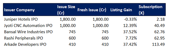 Fresh issues, which represent the capital raised by companies for expansion, debt reduction, and operational support, also saw significant growth in 2024. A total of 20 companies raised Rs. 24,186 crore exclusively through 100% fresh issues, emphasizing their focus on funding growth, expansion, and operational requirements.